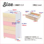 (約)外寸:(約)60x39x105cm引き出し外寸:(約)57.5x37x16cm
